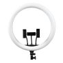 Лампа RGB MJ38 38cm – модель с элегантным дизайном и качественной реализацией. Данное устройство может использоваться в качестве дополнительного источника света, поможет организовать профессиональное освещение при съемке фото и видео в фотостудии и дома, при нанесении макияжа и уходе за ногтями. Аксессуар изготовлен из прочного пластика, выполнен в форме кольца с диаметром 38 см, что в сочетании с, входящим в комплект, удобным держателем для смартфона поможет создать потрясающие фото-снимки и видео-ролики без каких-либо теней и с идеально рассеивающимся светом. Лампа способна работать более чем в 10 различных режимах, например, светить различными цветами по отдельности, несколькими переливающимся по кругу сегментами или градиентом, одним движущимся сегментом по кругу. Кроме держателя, в комплект входит адаптер со встроенным кабелем и пульт. Лампы RGB MJ38 38cm оптом – это лучшее предложение в своем ценовом диапазоне.